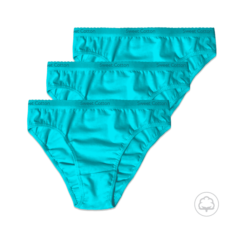 Bikini de Algodón Sweet Cotton con Elástico Visible Pack x3 – Turquesa